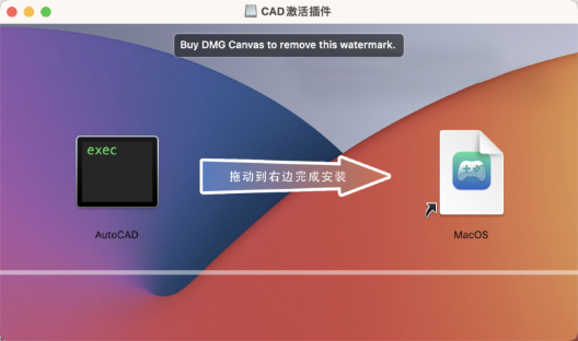 4. 安装主程序后双击『CAD激活工具』,将『AutoCAD』图标文件拖动复制到右边的『MacOS』文件夹进行覆盖即可完成激活!