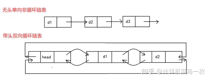 1. 无头单向非循环链表:结构简单,一般不会单独用来存数据。实际中更多是作为其他数据结构的子结构,如哈希桶、图的邻接表等等。另外这种结构在笔试面试中出现很多。