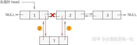 在链表节点删除中使用双指针的原因是为了更改指针的指向。