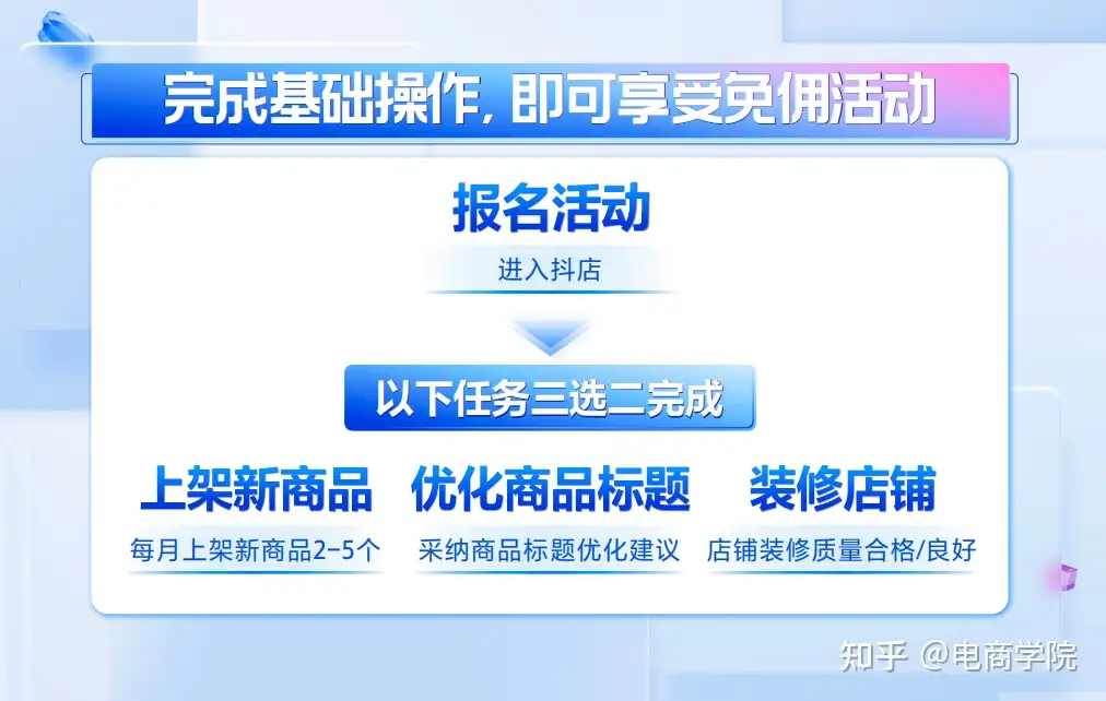 据悉,自3月1日起,抖音电商向商家返还商品卡订单产生的技术服务费。商品卡订单是指用户在抖音通过非直播、非短视频点击商品卡成交产生的订单。商家需报名参加活动并完成“三选二”任务(上架新商品、优化标题、装修店铺),即可获享免佣政策,活动时间为2023年3月1日至2023年5月31日。