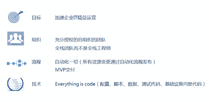 以产品为核心,将代码、配置、环境进行严格分离,同时覆盖产品全生命周期。