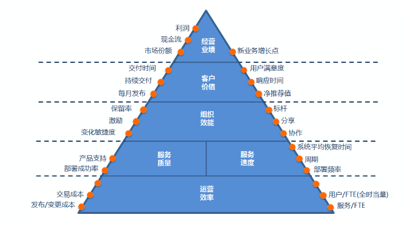 最后给大家奉上DevOps成熟度评判指标,在践行DevOps时,可以从运营效率、IT服务水平、组织效能、客户价值、经营业绩五个维度进行评判,持续优化与改进。