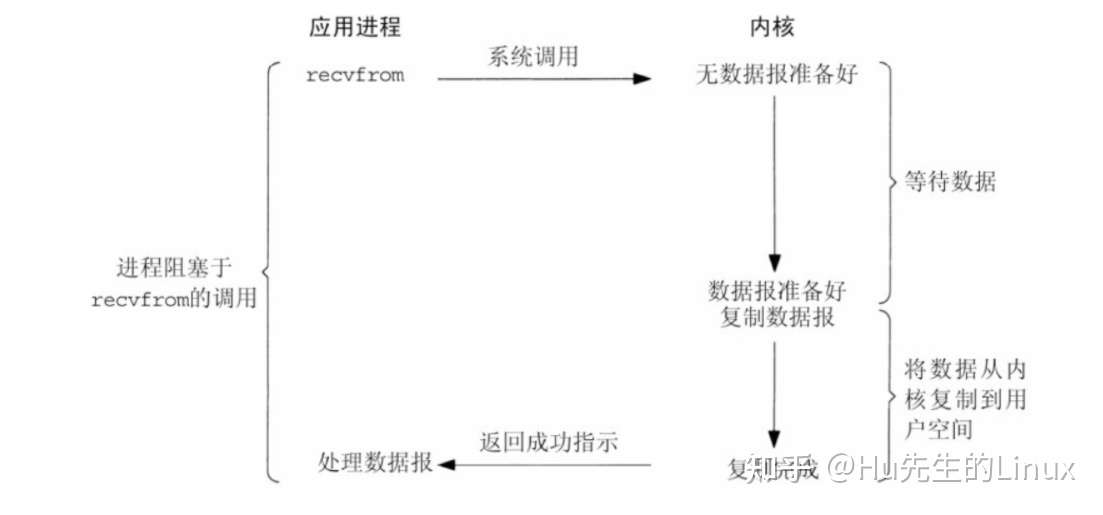 用户进程从发起请求,到最终拿到数据前,一直挂起等待; 数据会由用户进程完成拷贝