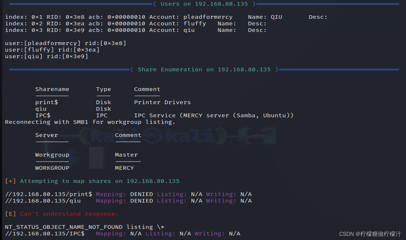 相同的,我们还是对samba进行枚举。我们从中发现用户和共享文件夹。