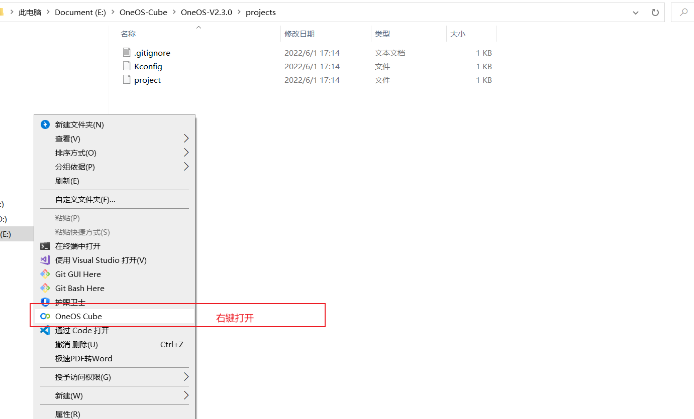 打开project文件夹,然后使用OneOS-Cube右键打开