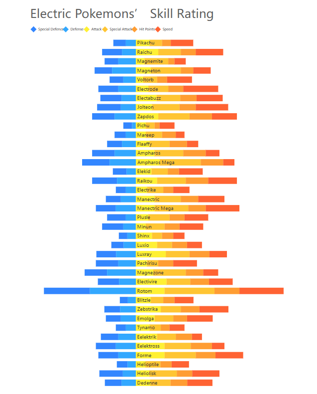 发散条形图(发散柱形图)是类似于常规条形图的图表。通常用于显示问卷或调查的结果,但不限于此用例,如上例所示。在发散条形图中,使用对比色来显示要比较的类别。此图表的一个非常常见的变体称为“发散堆叠条形图”,它添加了额外的段。换句话说,它与常规堆叠条形图非常相似,但中间有一个额外的基线。但是发散堆积条形图是堆积条形图的一个非常好的替代方案,因为它更容易将堆积条图与它进行比较。