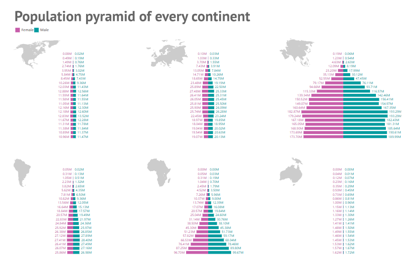 与发散条形图非常相似,人口金字塔是一种专门可视化人口之间年龄和性别分布的图表。人口金字塔通常由人口统计学家使用,可以成为许多报告中非常简单和不错的补充。