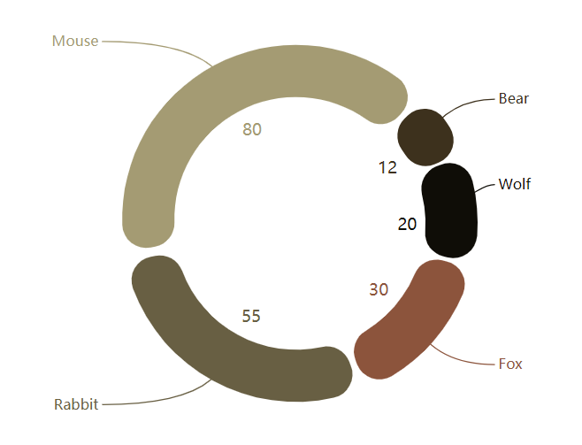 旭日图也称环形图、多级饼图等,是显示分层数据的理想选择。通过一系列环显示层次结构,这些环针对每个类别节点进行切片。每个环对应于层次结构中的一个级别,中心圆圈表示根节点,层次结构从根节点向外移动。具有多个类别级别的旭日图显示了外环与内环的关系。