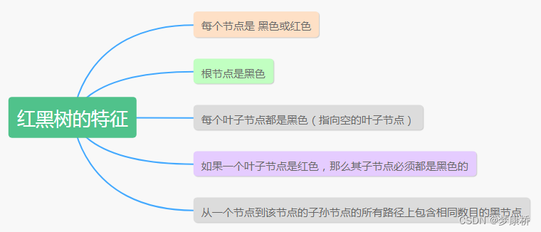 紧接上个问题,面试官很有可能会问红黑树,下面把红黑树的几个特征列出来: