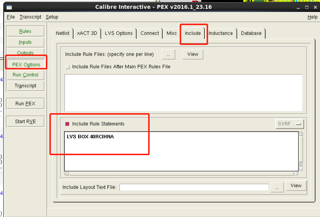 pex option中直接添加 LVS BOX 40RCIHNA.如下: