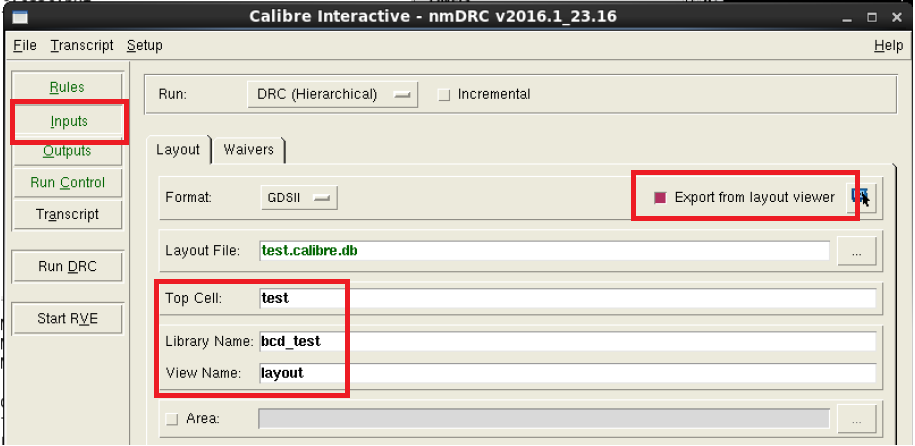 2.3 在Inputs Tab, 选择GDS从版图直接抽取,指定好正确的版图库名和CELL名称。如果数据没有更新,可以用原来的数据。