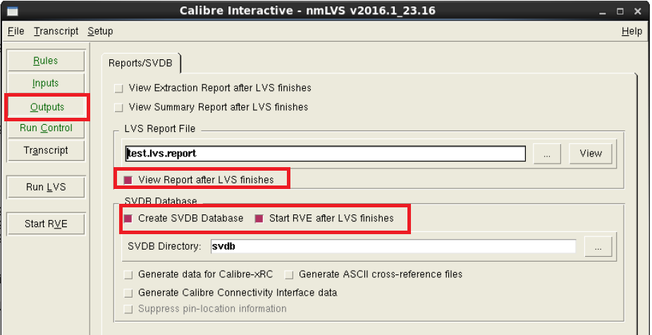 4.4在Outputs Tab,选择输出SVDB database,LVS Job跑完后,自动直接打开RVE看结果