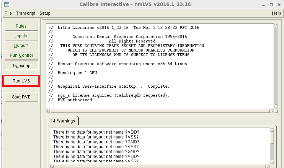 4.1 从版图窗口calibre->Run nmLVS调用LVS界面