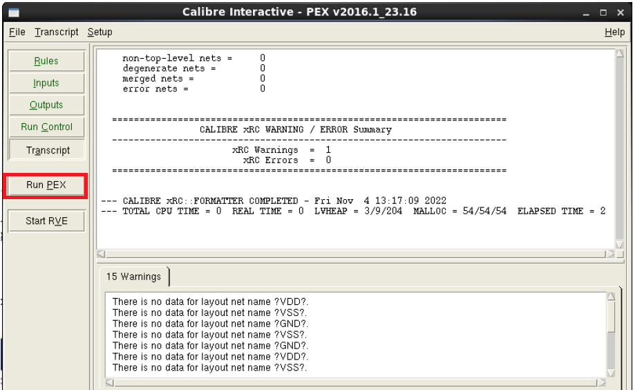 5.5 点击Run PEX Tab,系统会按照当前的环境设置,自动在后台运行LPE。对应的LOG和脚本产生在相应xrc目录下,方便Debug
