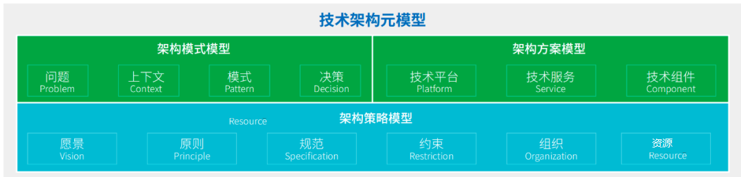 为了适应当今企业对技术架构的描述需求,我们在经典企业架构框架方法的基础上对技术架构元模型进行了补充扩展,内容主要由架构模式模型、架构方案模型、以及技术策略模型组成。