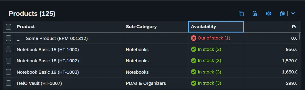 ObjectStatus控件还可以在表格行中使用,以显示行的状态或属性信息。例如,在一个采购订单应用程序中,可以使用ObjectStatus控件在每一行显示订单的状态,如已发送、已接收、已拒绝等。 -