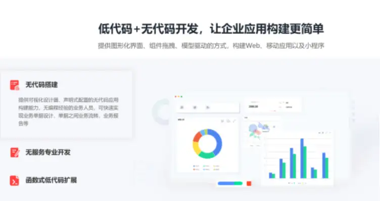 点开看看效果,看到是个锚点链接,能看到通过组建模型就能构建Web、移动应用以及小程序,好家伙,真是齐全呢啊。那咱们得试试!