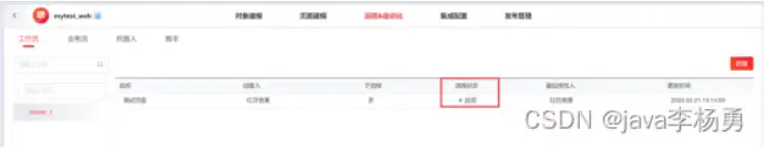 可以看到发布的提示信息,那么我们返回到页面看看是否在流程状态中看到开启状态。