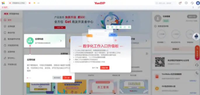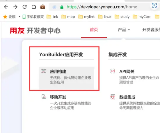 产品首页中的产品里面我们在第一个位置上就看到了一个叫做【YonBuilder】的低代码应用开发构建,这里写的词还有一个无代码,我就好奇了,所以我们来试试: