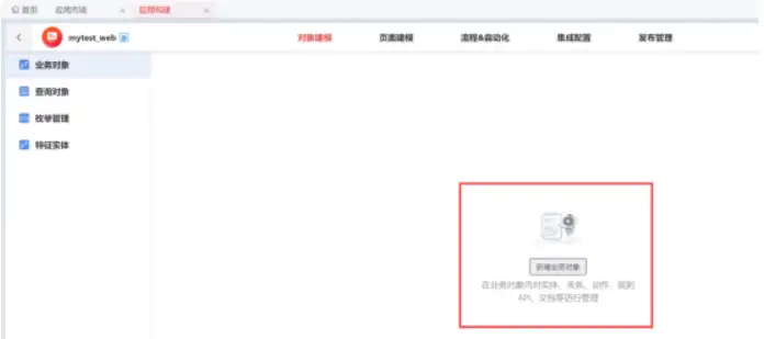 建模页面中直接一个大按钮就放在中间,点击【新增业务对象】。