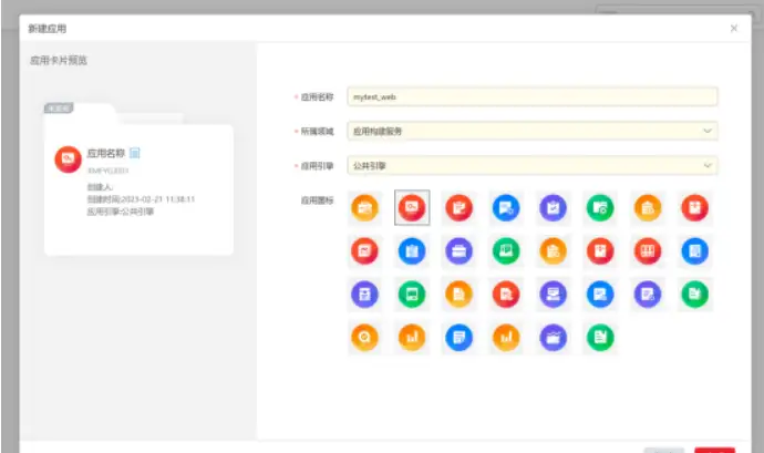 这里需要创建【新应用】,直接给与应用名称,领域,默认引擎就行,图标随便选。