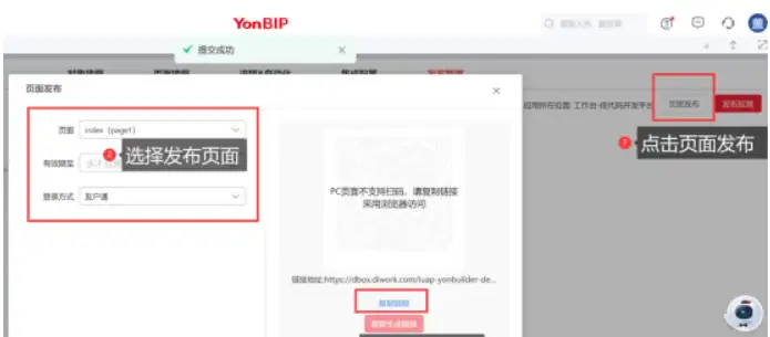 点击页面发布后这里让选择发布的网页,我用PC测试的,所以直接选择的是PC的页面。