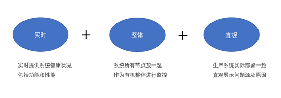 然后要针对系统做整体监控,把各个部分放一起,能够迅速识别哪些部分是好的,哪些部分不好。有问题的部分,又有可能是它依赖的部分引起的,因此依赖关系也要直观展示,便于定位真正的问题源。