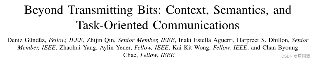 这是2022年10月发布在IJSAC上的一篇语义通信的综述,作者是帝国理工学院的Deniz Gündüz,他也是Deep-JSCC等一系列文章的作者。这篇文章就是从香农的信息论出发,总结了语义通信迄今为止的工作,涵盖了理论基础、算法以及基础的实现。