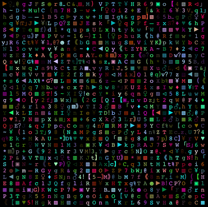 如此一来,在一个 300px x 300px 的内联元素内,我们同样可以实现多个不同的随机颜色。利用这个技巧,一样可以实现单个平面下的随机文字随机颜色效果:
