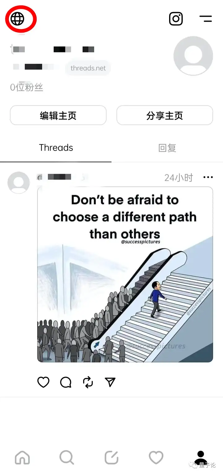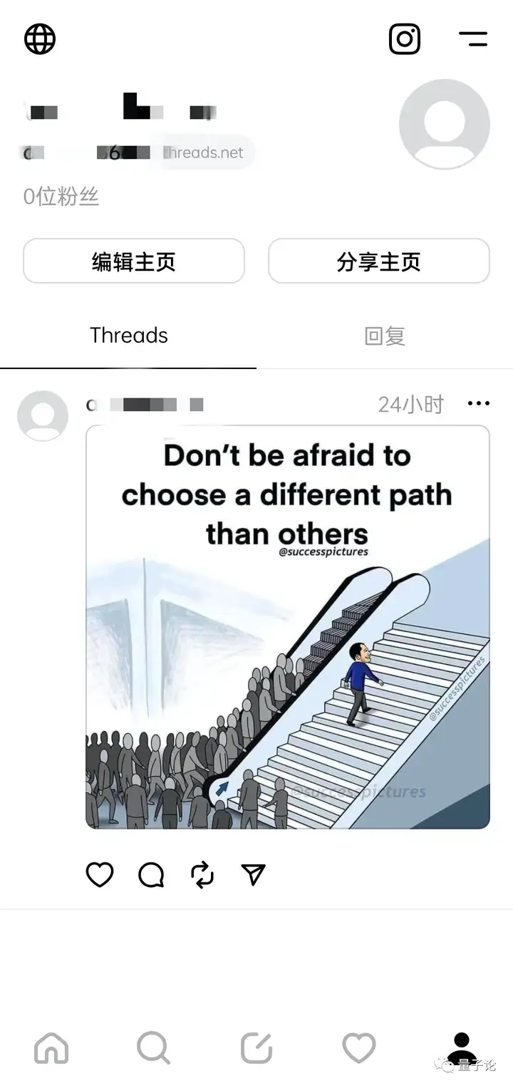 目前使用 Threads 依旧需要魔法,作为 Instagram 协同应用,Threads 目前功能比较简单,以文字信息为主,多数功能与推特一致。