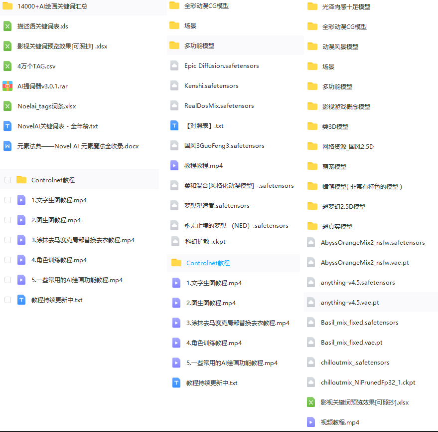 1.主文件:StableDiffusion程序安装包&视频教程,包含备用安装包