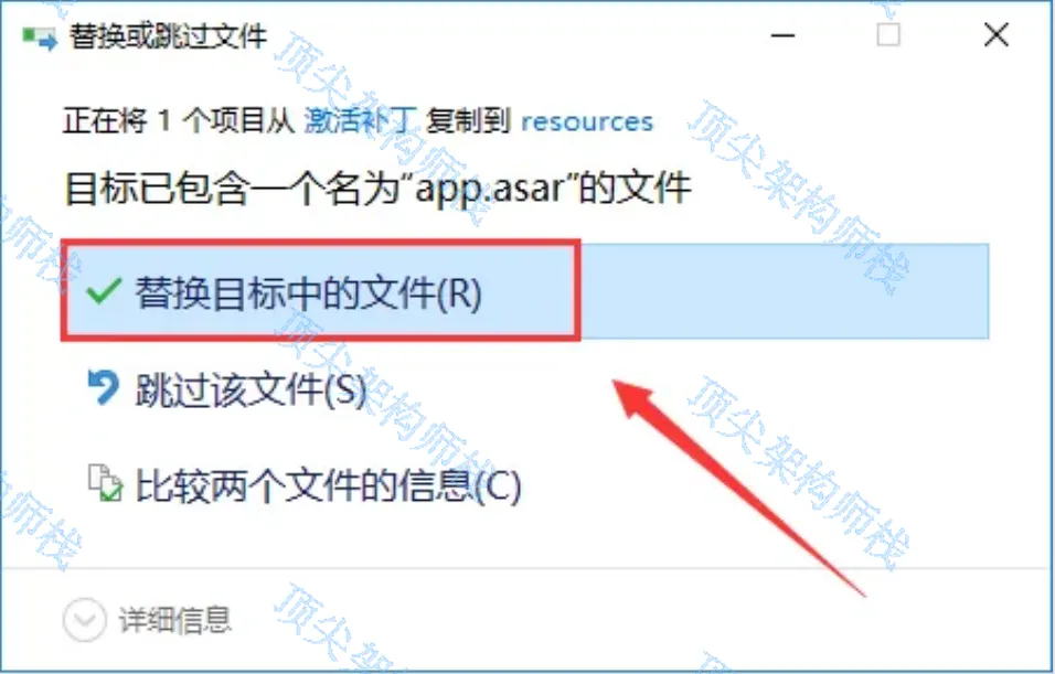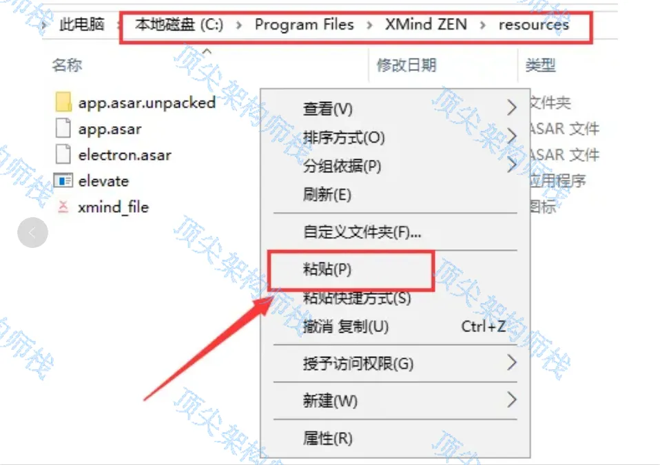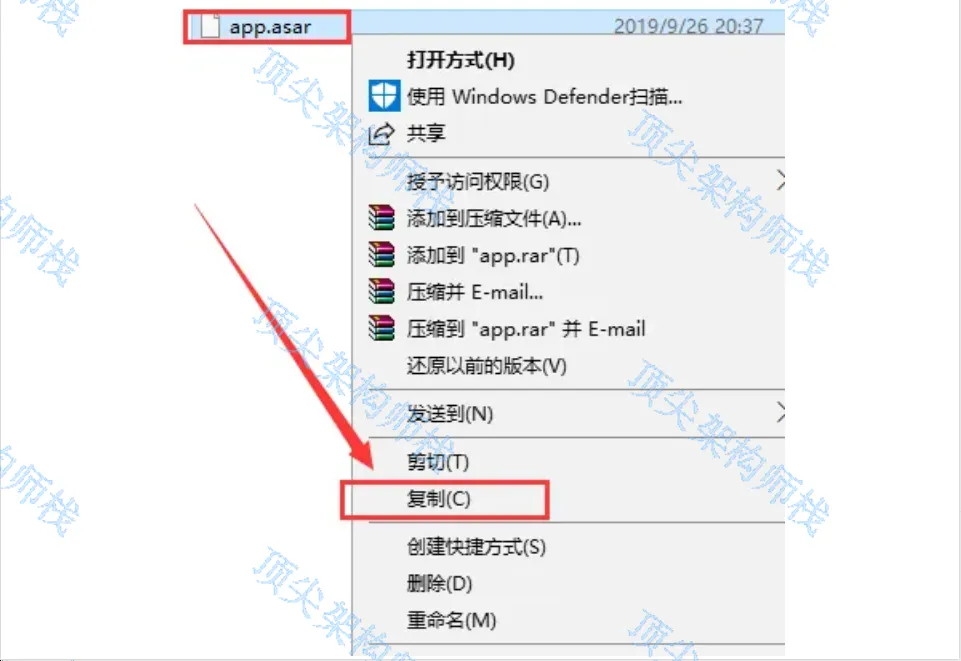 - 在桌面右键图标,选择【打开文件所在的位置】;打开安装包解压后的文件夹中的【激活补丁】文件夹,【复制】【app.asar】文件,到安装目录【resoutces】文件夹下。
