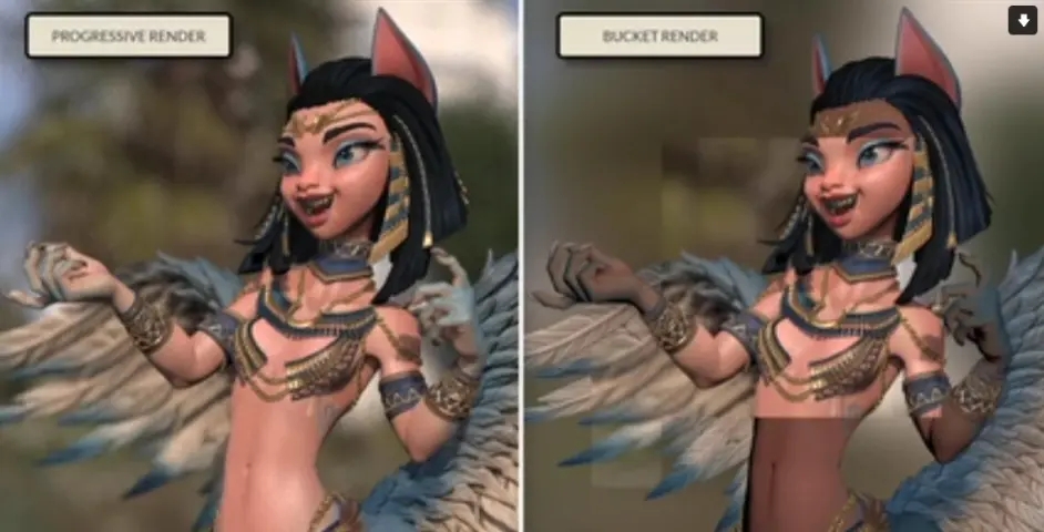 在适用于ZBrush的Redshift中用渐进式和块状渲染来控制你的渲染视觉表现。渐进式渲染允许艺术家不断预览他们的创作以发展外观。区块渲染将最终的图像结果显示在模块区域中。你可以在适用于ZBrush的Redshift中用渐进式或块状渲染来最终确定最终图像的细节,对渲染质量有更大的控制。