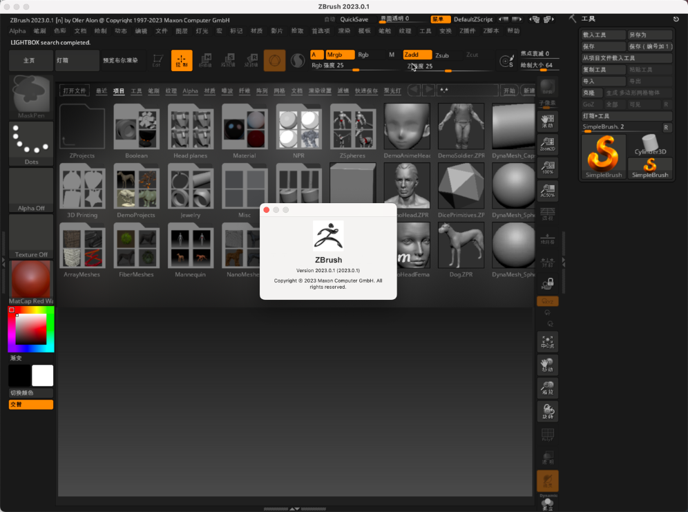 ZBrush2023 Mac破 解版来啦,这是mac系统上非常专业的数字雕刻和绘画软件,是数字雕塑行业标杆。ZBrush 2023最新版提供啦强大的新功能,可将您的创造力推向新的层面!您可以使用可自定义的画笔在实时环境中塑造,纹理和绘制虚拟粘土,是非常棒的艺术家设计工具。现在提供zbrush 2023 mac激活版下载,附补丁,可以成功激活软件,永久使用!