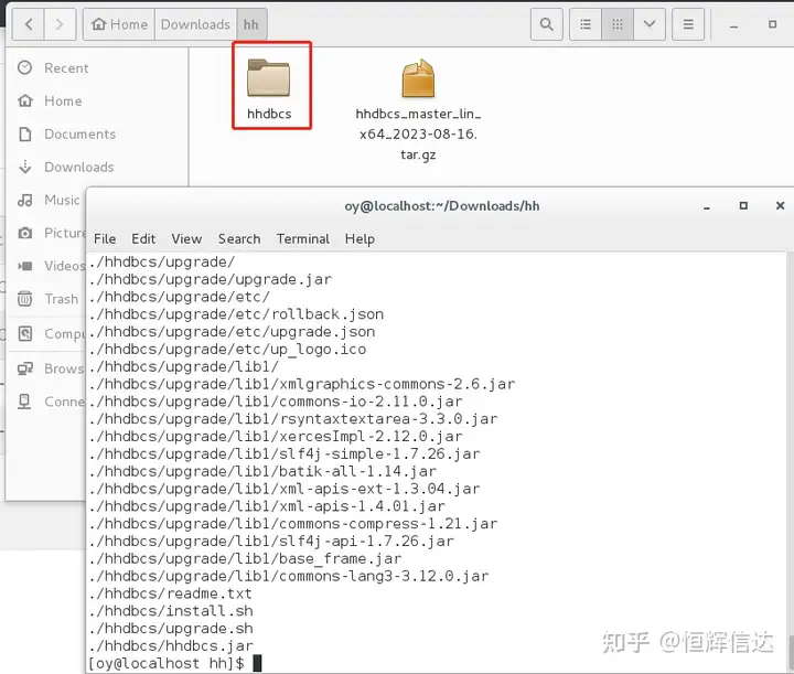 进入下载目录,对HHDBCS压缩包进行解压;