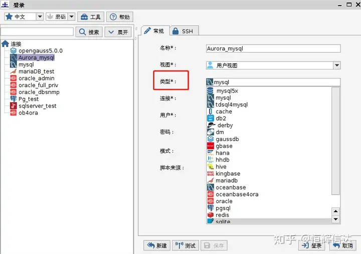 点击“登陆”,即可连接相应的数据库;