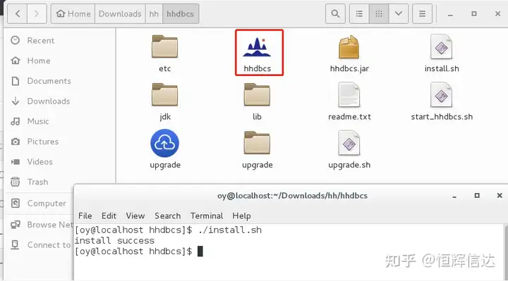 解压完成后,进入HHDBCS文件夹,运行 install.sh; 可以看到,文件夹中出现软件图标;