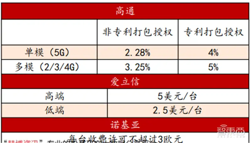 ▲高通5G专利收费标准