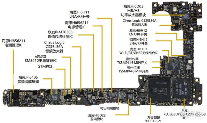 ▲基带和射频前端紧密耦合:华为Mate 30 Pro