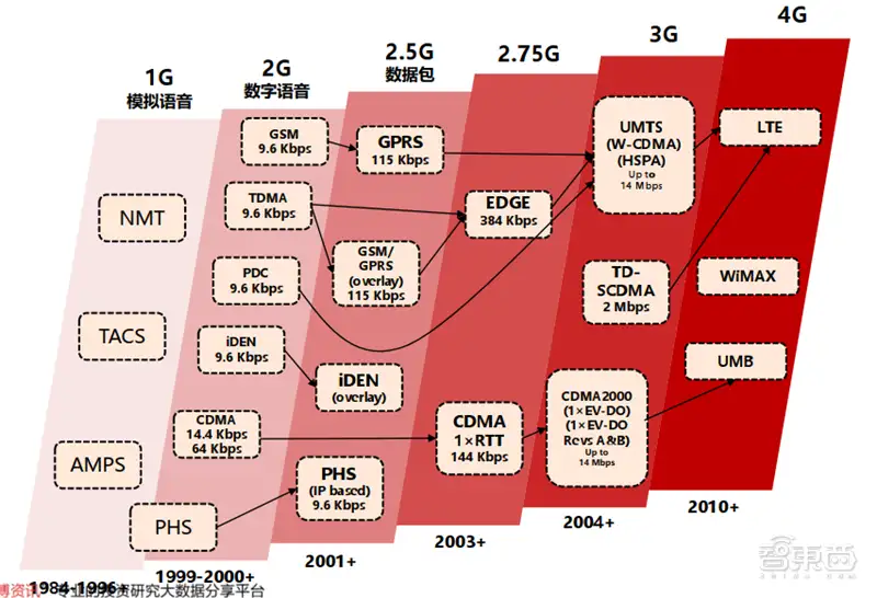 ▲1G-4G通信技术标准变迁
