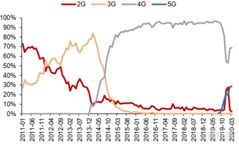 ▲中国2G/3G/4G渗透率