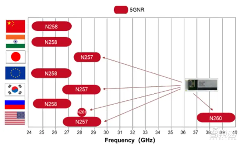 ▲ 世界各国在毫米波频段分布
