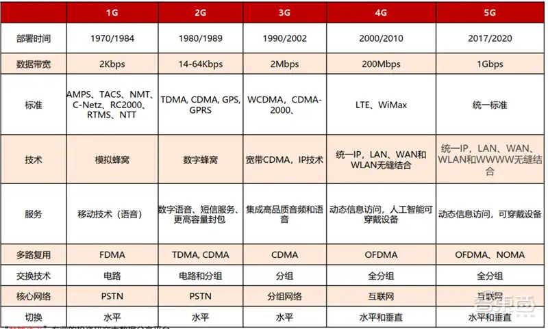 ▲1G网络到5G网络的主要变化
