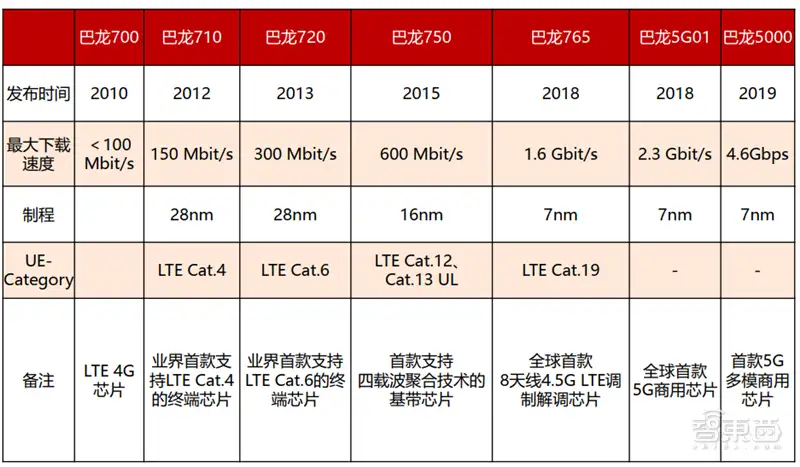 ▲海思基带芯片发展历程
