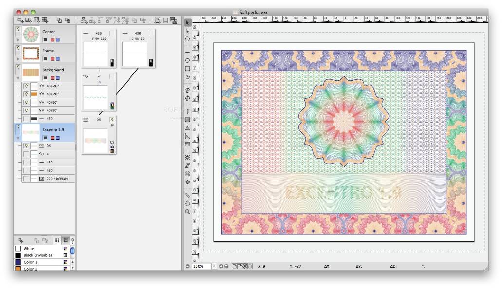Excentro for mac是Mac os平台上的一款非常不错的Mac平面设计软件,Excentro for mac是 OS X 上的一款防伪图案制作软件,可以创建刻花设计,背景,边框或花环。excentro 是一个接近于90年代中期的一个原始Excentro功能的简化版本。