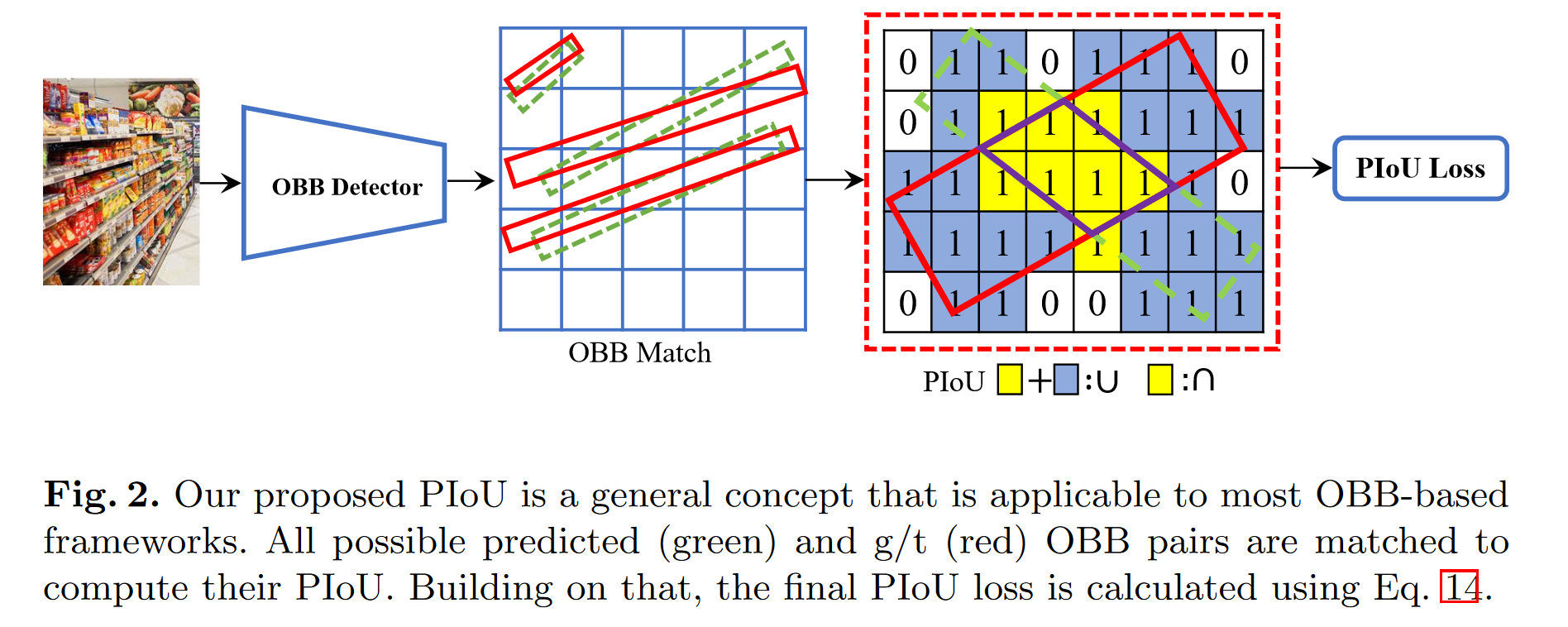 因此,本文提出了一种新的损失,即 Pixels-IoU(PIoU)损失,以利用角度和 IoU 进行精确的 OBB 回归。PIoU 损失是从 IoU 度量导出的,具有像素级形式,这很简单,适用于水平和定向边界框。