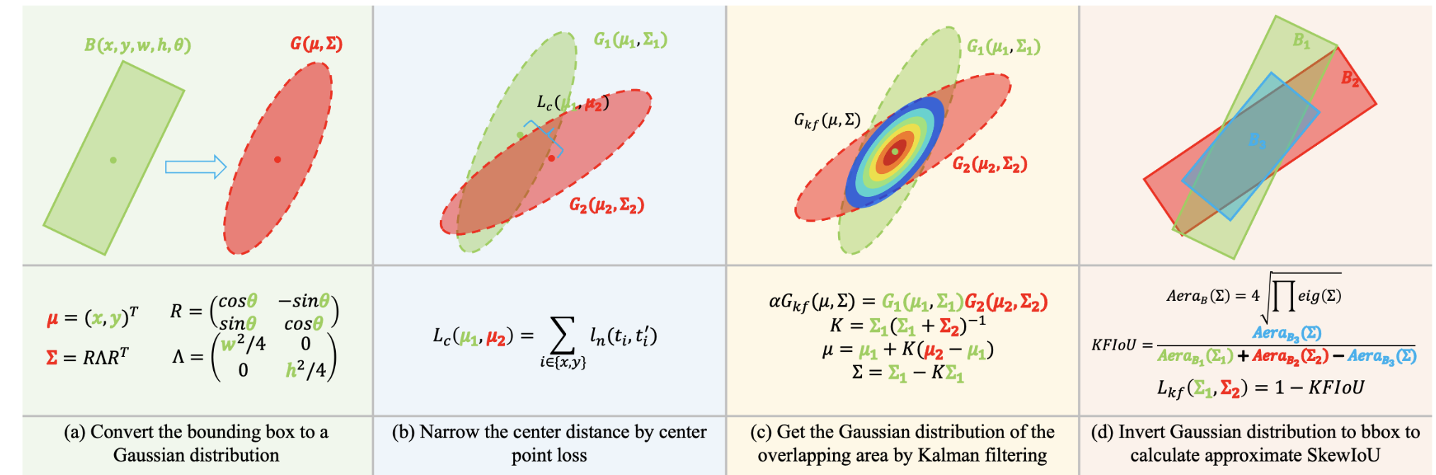 - 将三个高斯分布反转换成旋转矩形,计算近似的 SkewIoU