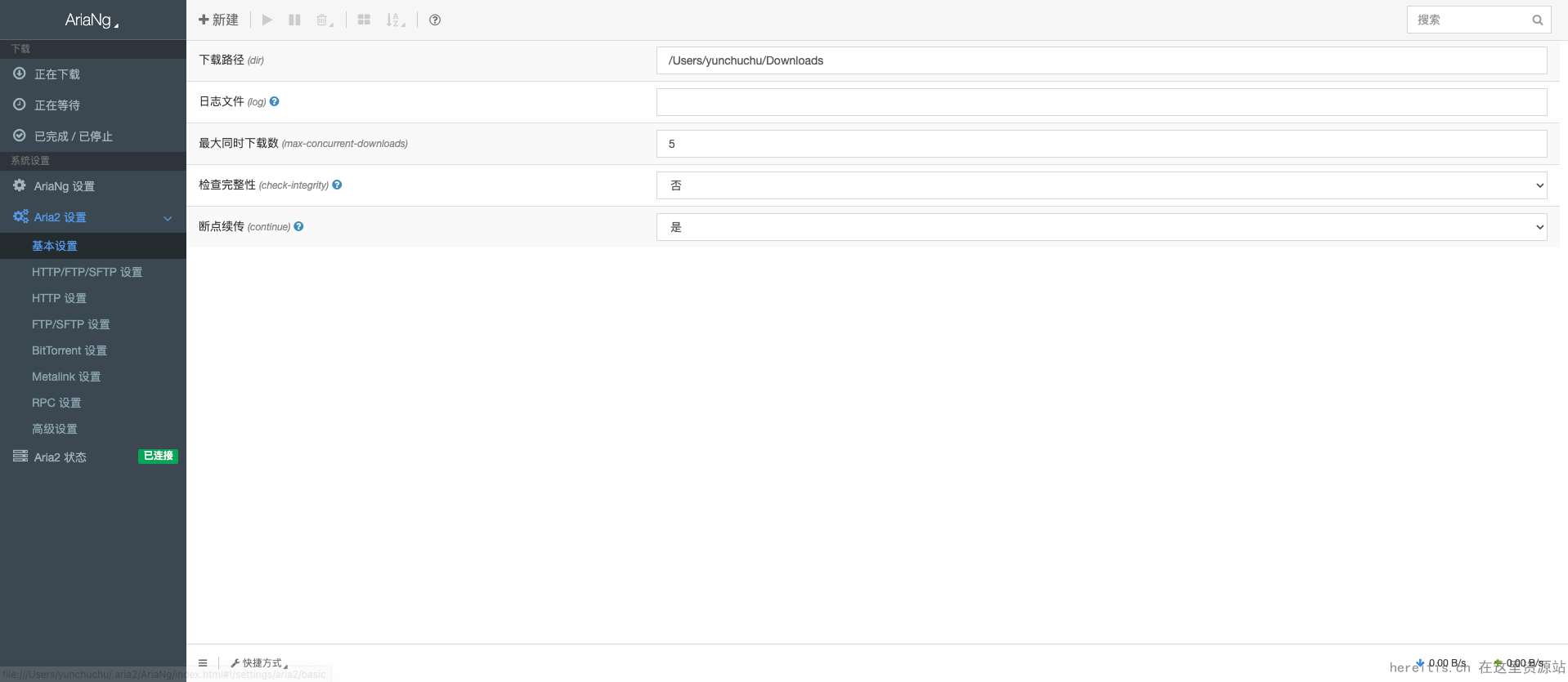 最后我们打开 AriaNg 文件夹下的 index.html 网页就能通过图像界面来控制 aria2 了