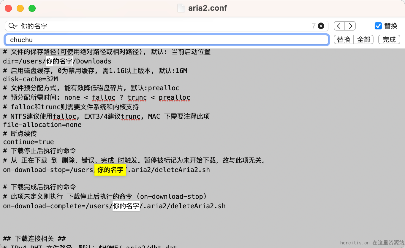然后我们通过文本编辑器打开 aria2.conf 文件进行配置