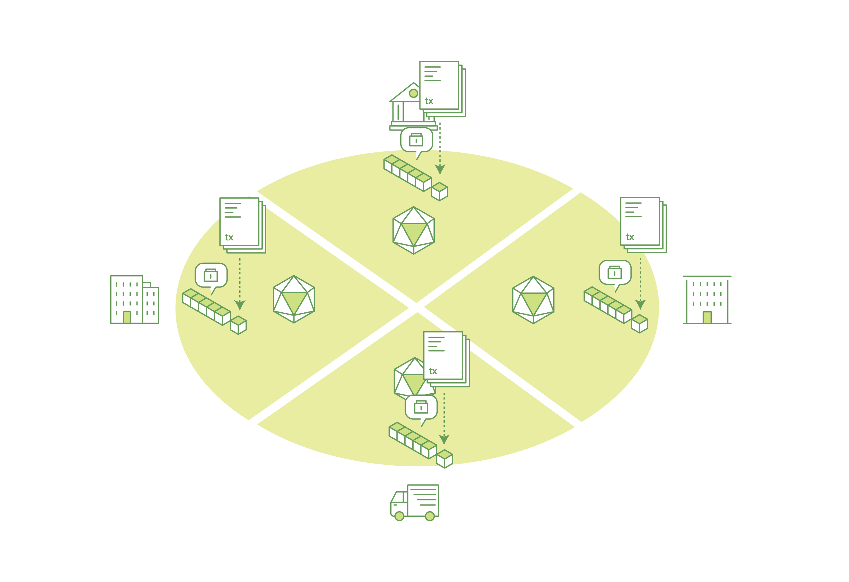 区块链核心概念是分布式帐本,就像下面的图1所示,同样的帐本(全量的交易数据,详见下节)在任意一台节点(不包括客户端)上都有。所以,其优点是数据很难造假,造假后也可以通过追溯记录来追究法律责任。而缺点就是极大的浪费,传统服务每份数据都尽量少存几份,即使存了三份拷贝都已经考虑到诸多异常,并使服务可用性达到N个9了。而区块链这种特性,同时造成的另一个问题是帐本不能太大,至少不能超过区块链网络中最小结点的存储以及处理能力。所以,这制约了总交易数据(下文为方便概念介绍,统称为帐本ledger)的条数,进而也影响了能写入区块链的单条交易数据的大小。